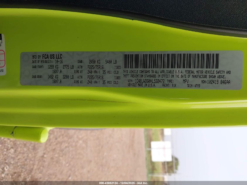 2017 JEEP WRANGLER 2017 року Бензин, 3.6, Полный привод, vin - 1C4BJWDG0HL532472 из США