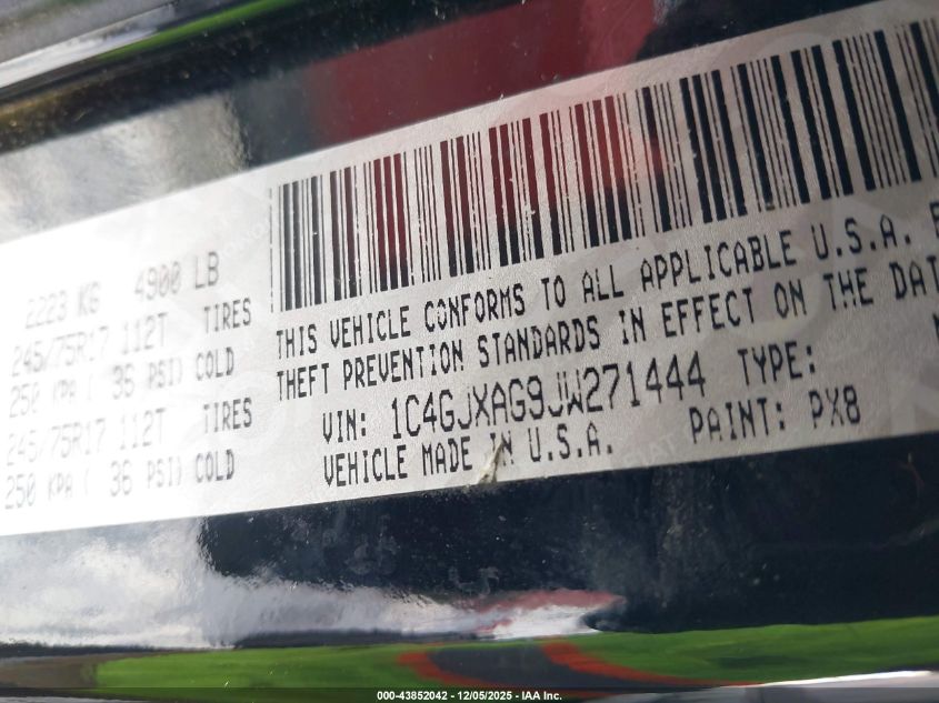 Цвет ЧерныйЦилиндры 6Привод Полный приводVIN 1C4GJXAG9JW271444Состояние Заводится и едет (проверено)Повреждения Передняя или задняя AutoRIA