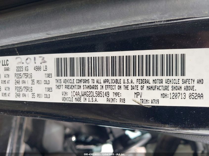 2013 JEEP WRANGLER 2013 року Бензин, 3.6, Полный привод, vin - 1C4AJWAG2DL585149 из США