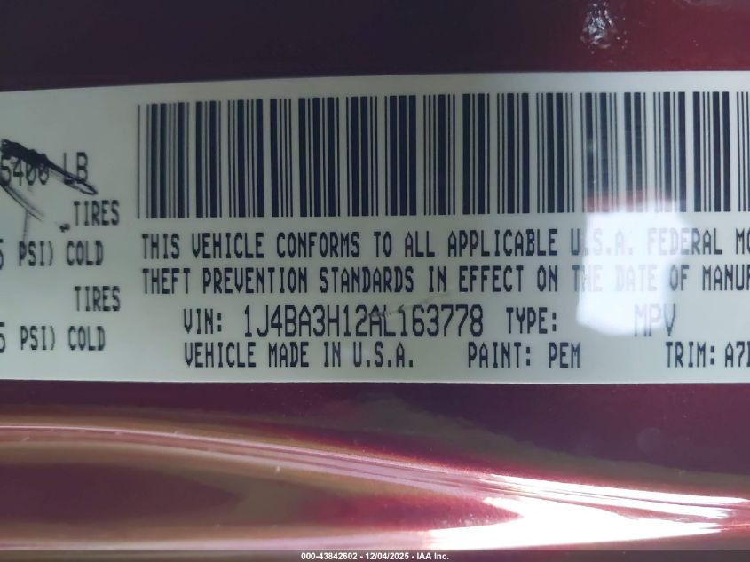 Цвет БургундияЦилиндры 6Привод Полный приводVIN 1J4BA3H12AL163778Состояние СтационарноПовреждения Передняя или задняя