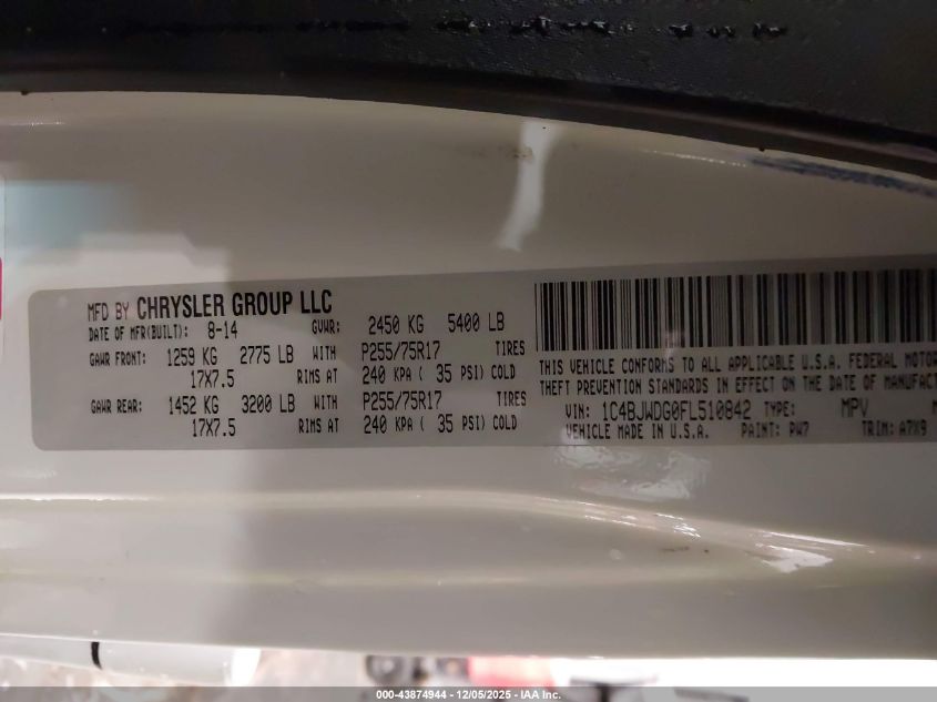 2015 JEEP WRANGLER 2015 року Бензин, 3.6, Полный привод, vin - 1C4BJWDG0FL510842 из США