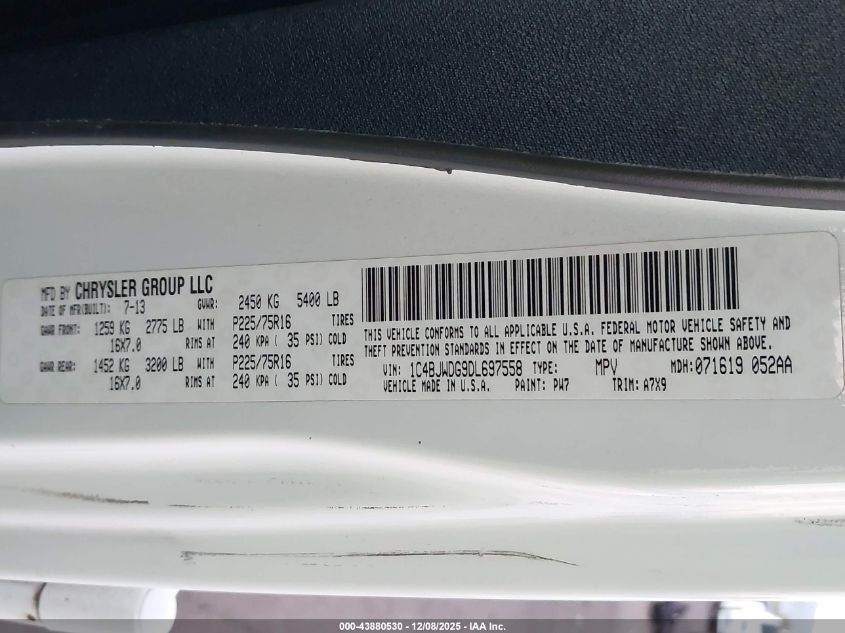 Цвет БелыйЦилиндры 6Привод Полный приводVIN 1C4BJWDG9DL697558Состояние Заводится и едет (проверено)Повреждения Правая сторона AutoRIA