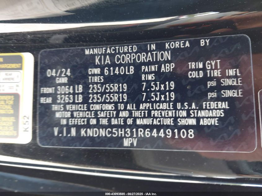 2024 KIA CARNIVAL 2024 року Бензин, 3.5, Передний привод, vin - KNDNC5H31R6449108 из США