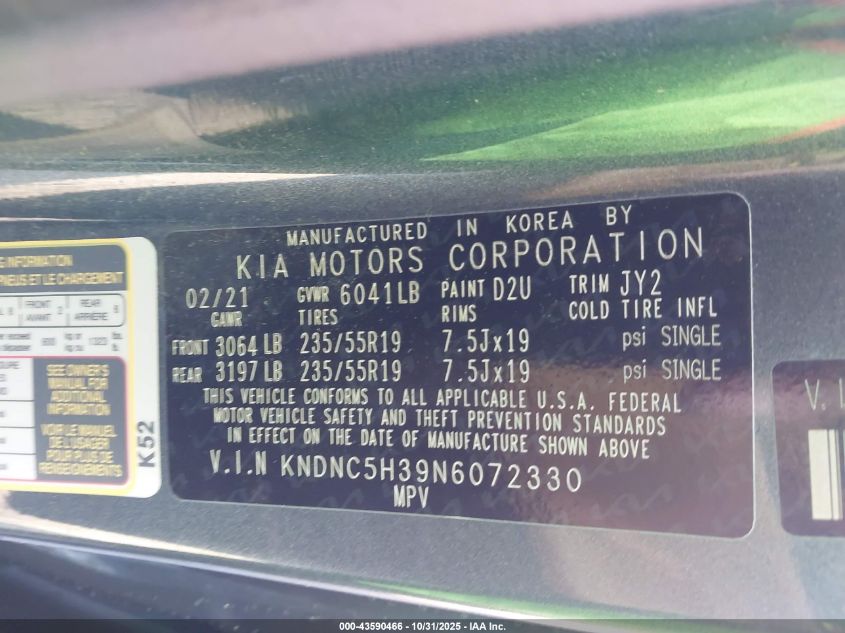 2022 KIA CARNIVAL 2022 року Бензин, 3.5, Передний привод, vin - KNDNC5H39N6072330 из США