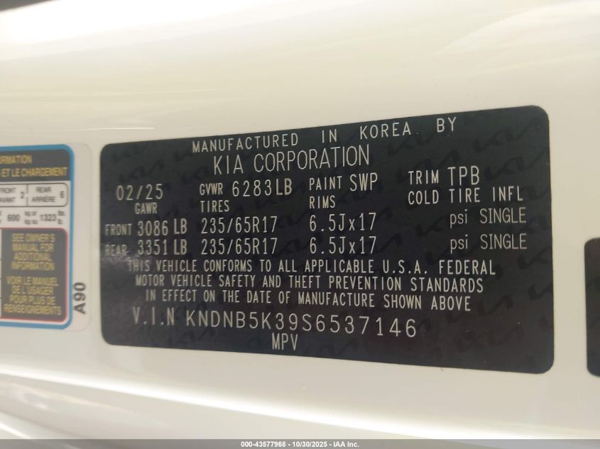 2025 KIA CARNIVAL 2025 року Бензин, 3.5, Передний привод, vin - KNDNB5K39S6537146 из США