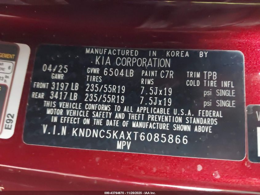 2026 KIA CARNIVAL 2026 року Гибрид, 1.6, Передний привод, vin - KNDNC5KAXT6085866 из США
