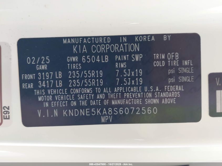2025 KIA CARNIVAL 2025 року Гибрид, 1.6, Передний привод, vin - KNDNE5KA8S6072560 из США