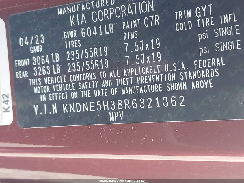 2024 KIA CARNIVAL 2024 року Бензин, 3.5, Передний привод, vin - KNDNE5H38R6321362 из США
