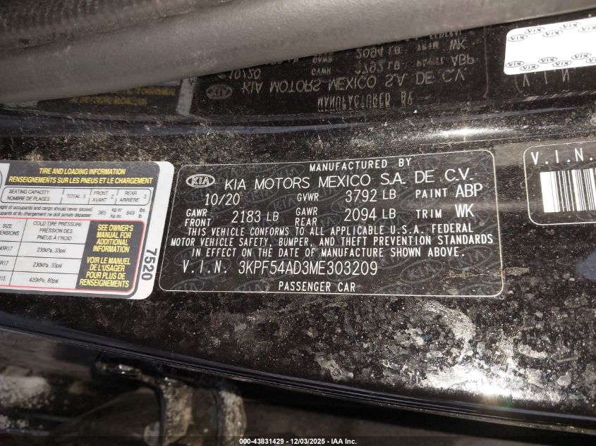 2021 KIA FORTE 2021 року Бензин, 2.0, Передний привод, vin - 3KPF54AD3ME303209 из США