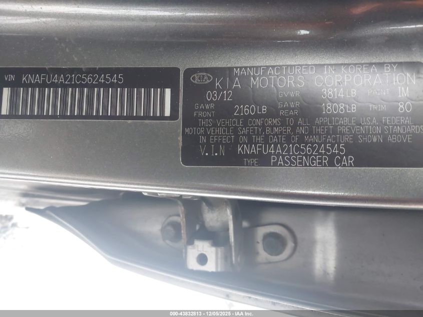 2012 KIA FORTE 2012 року Бензин, 2.0, Передний привод, vin - KNAFU4A21C5624545 из США
