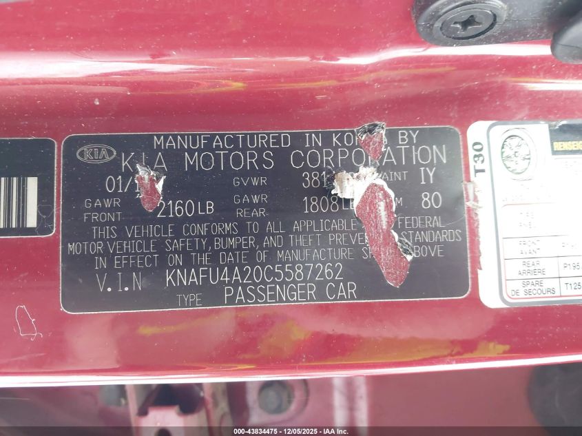 2012 KIA FORTE 2012 року Бензин, 2.0, Передний привод, vin - KNAFU4A20C5587262 из США