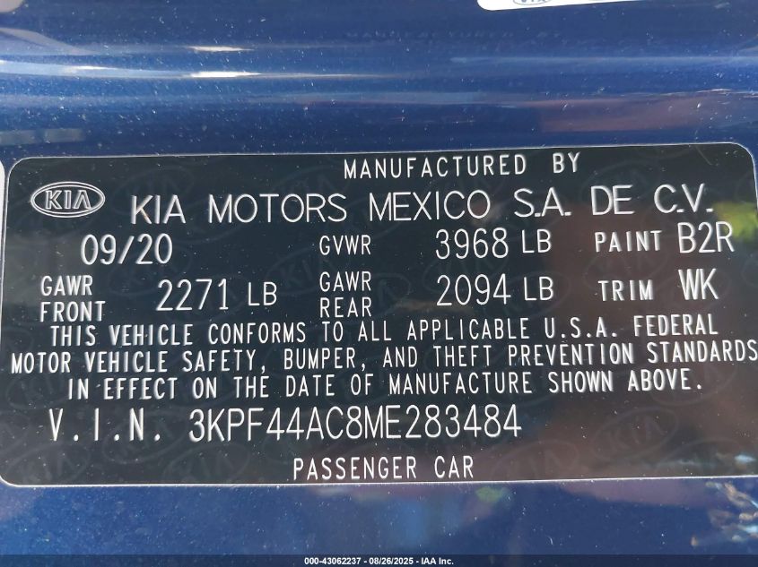 Цвет СинийЦилиндры 4Привод Передний приводVIN 3KPF44AC8ME283484Состояние Заводится и едет (проверено)Повреждения Передняя или задняяДата аукциона 2025-12-11 AutoRIA