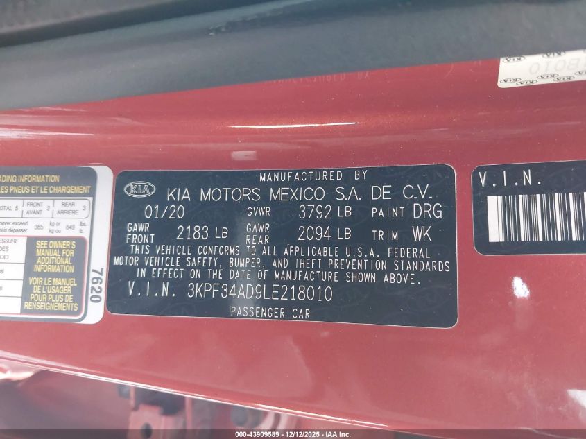 2020 KIA FORTE 2020 року Бензин, 2.0, Передний привод, vin - 3KPF34AD9LE218010 из США