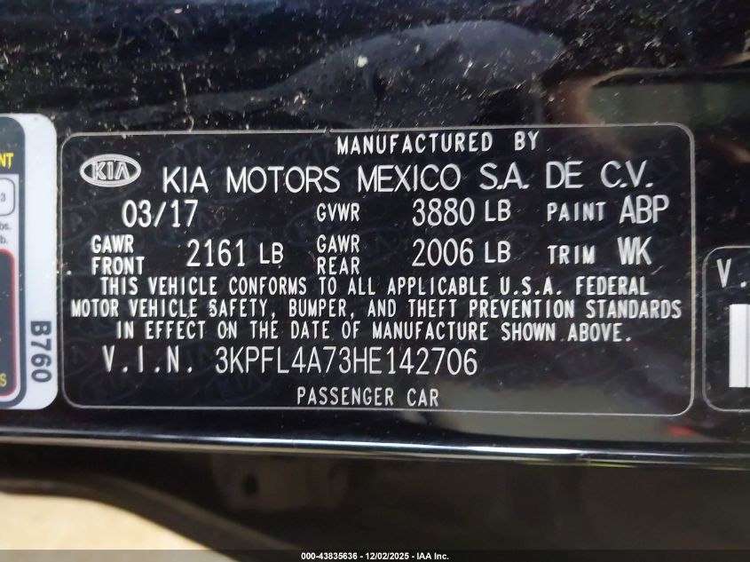 2017 KIA FORTE 2017 року Бензин, 2.0, Передний привод, vin - 3KPFL4A73HE142706 из США