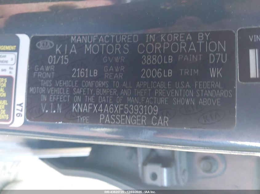 2015 KIA FORTE 2015 року Бензин, 1.8, Передний привод, vin - KNAFX4A6XF5393109 из США