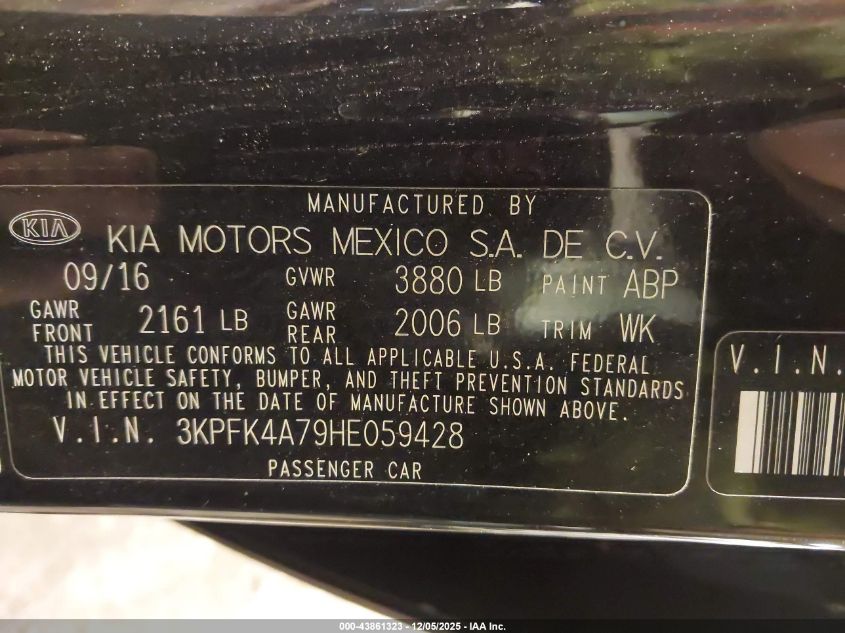 2017 KIA FORTE 2017 року Бензин, 2.0, Передний привод, vin - 3KPFK4A79HE059428 из США