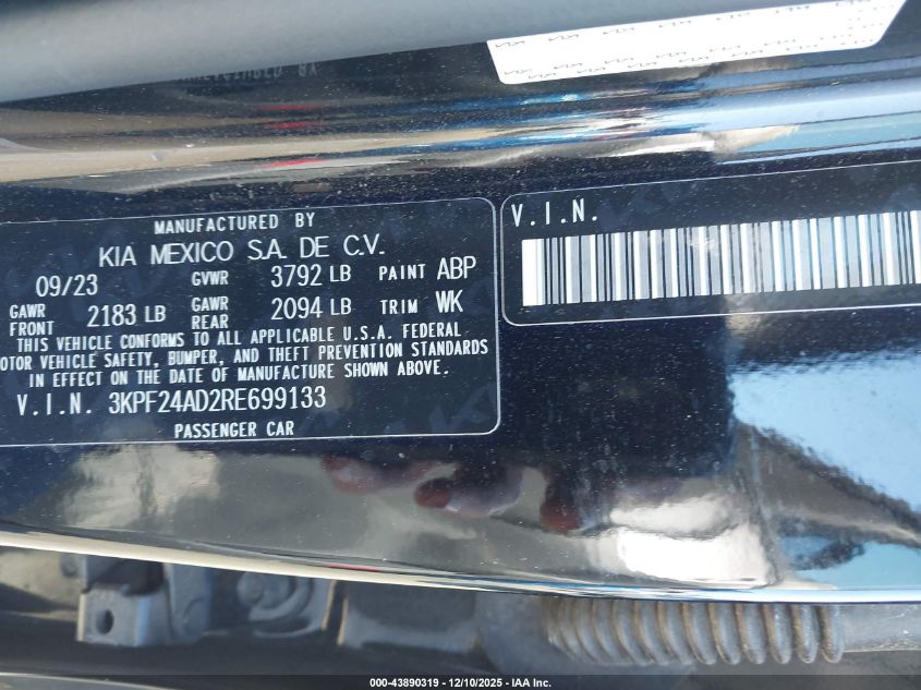 2024 KIA FORTE 2024 року Бензин, 2.0, Передний привод, vin - 3KPF24AD2RE699133 из США