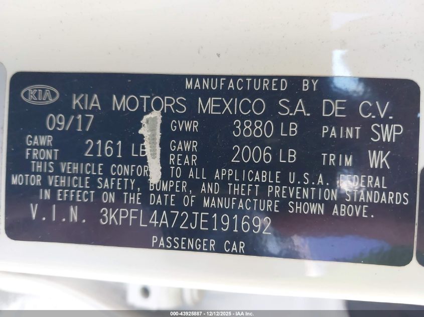 2018 KIA FORTE 2018 року Бензин, 2.0, Передний привод, vin - 3KPFL4A72JE191692 из США