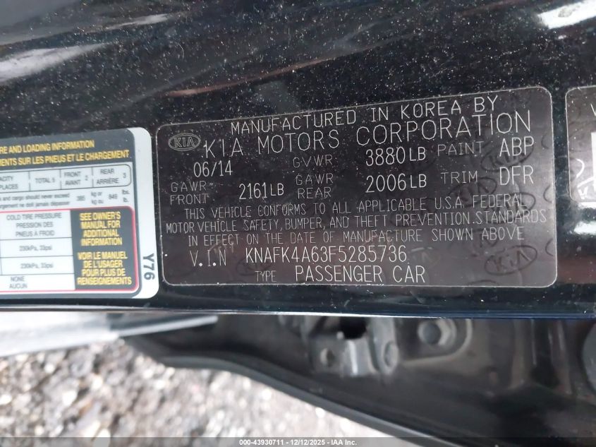 2015 KIA FORTE 2015 року Бензин, 1.8, Передний привод, vin - KNAFK4A63F5285736 из США