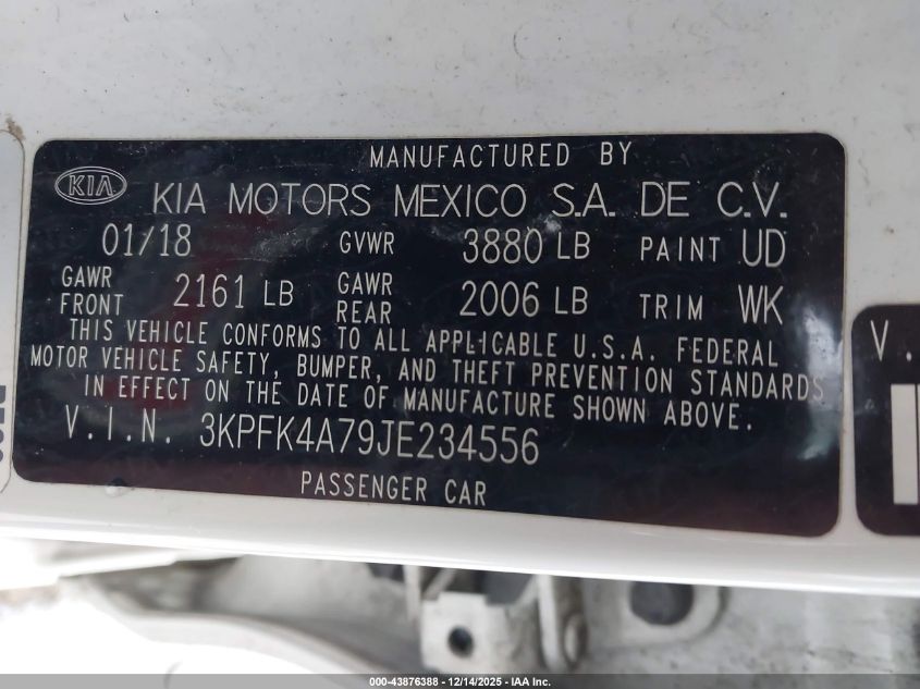 2018 KIA FORTE 2018 року Бензин, 2.0, Передний привод, vin - 3KPFK4A79JE234556 из США