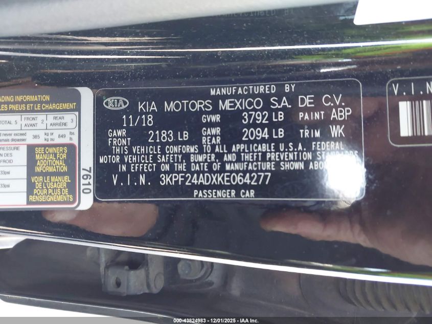 2019 KIA FORTE 2019 року Бензин, 2.0, Передний привод, vin - 3KPF24ADXKE064277 из США
