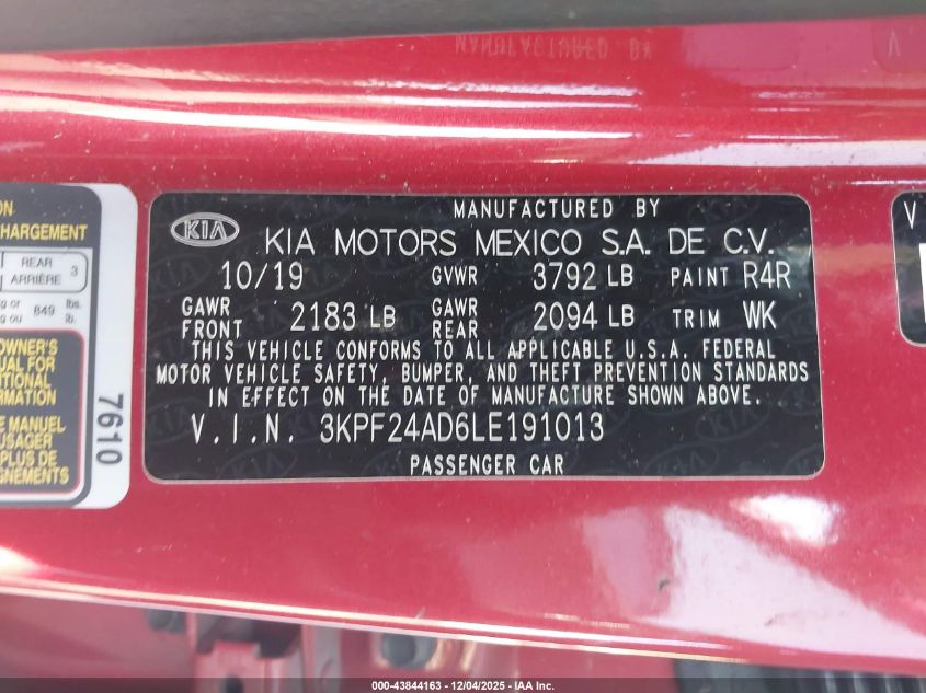 2020 KIA FORTE 2020 року Бензин, 2.0, Передний привод, vin - 3KPF24AD6LE191013 из США