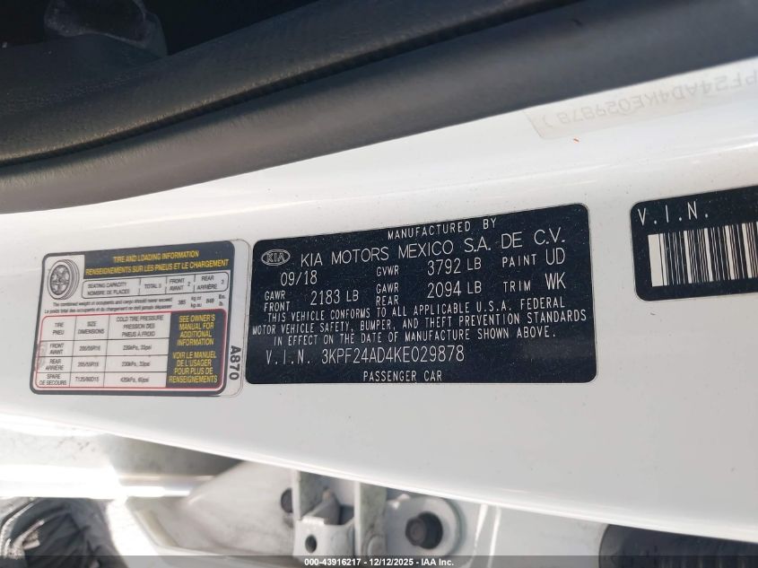 2019 KIA FORTE 2019 року Бензин, 2.0, Передний привод, vin - 3KPF24AD4KE029878 из США