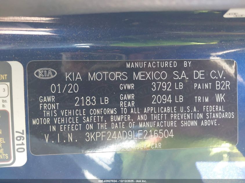 2020 KIA FORTE 2020 року Бензин, 2.0, Передний привод, vin - 3KPF24AD9LE216504 из США