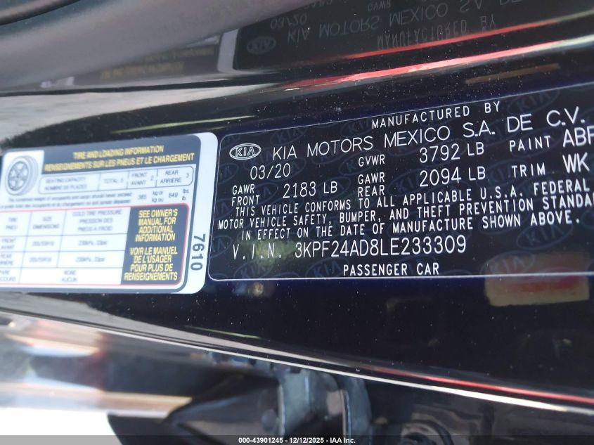 2020 KIA FORTE 2020 року Бензин, 2.0, Передний привод, vin - 3KPF24AD8LE233309 из США