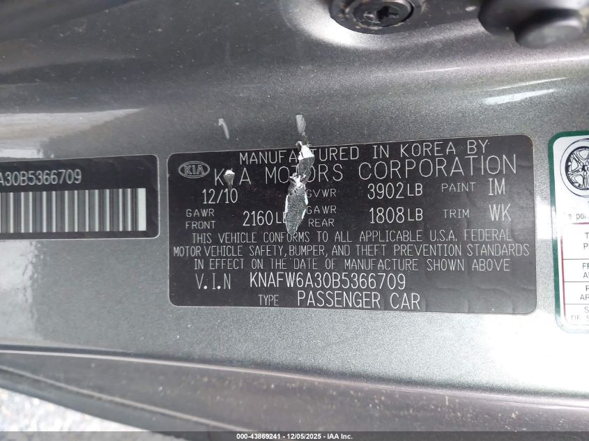 2011 KIA FORTE 2011 року Бензин, 2.4, Передний привод, vin - KNAFW6A30B5366709 из США