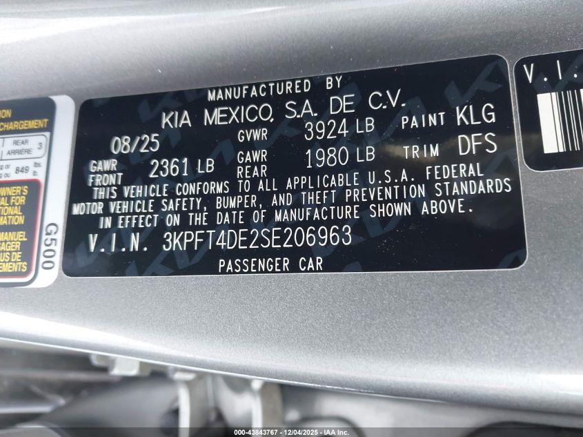 2025 KIA K4 2025 року Бензин, 2.0, Передний привод, vin - 3KPFT4DE2SE206963 из США