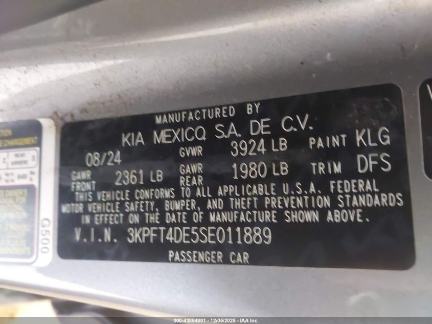 2025 KIA K4 2025 року Бензин, 2.0, Передний привод, vin - 3KPFT4DE5SE011889 из США