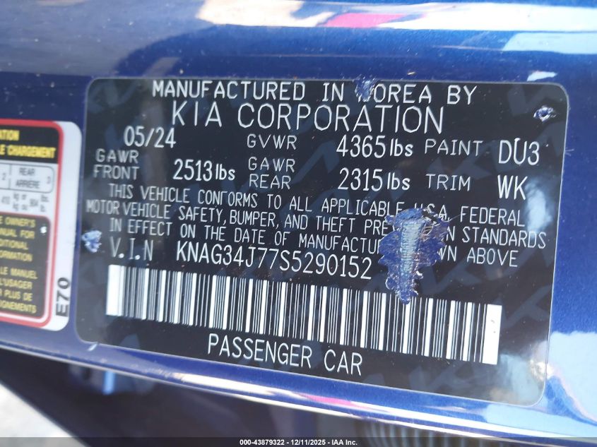 2025 KIA K5 2025 року Бензин, 2.5, Передний привод, vin - KNAG34J77S5290152 из США