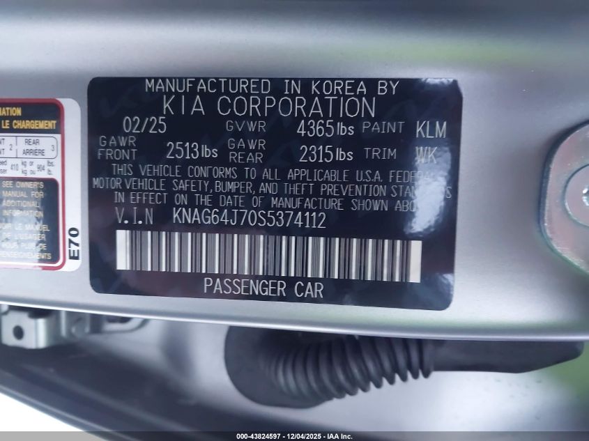 2025 KIA K5 2025 року Бензин, 2.5, Передний привод, vin - KNAG64J70S5374112 из США