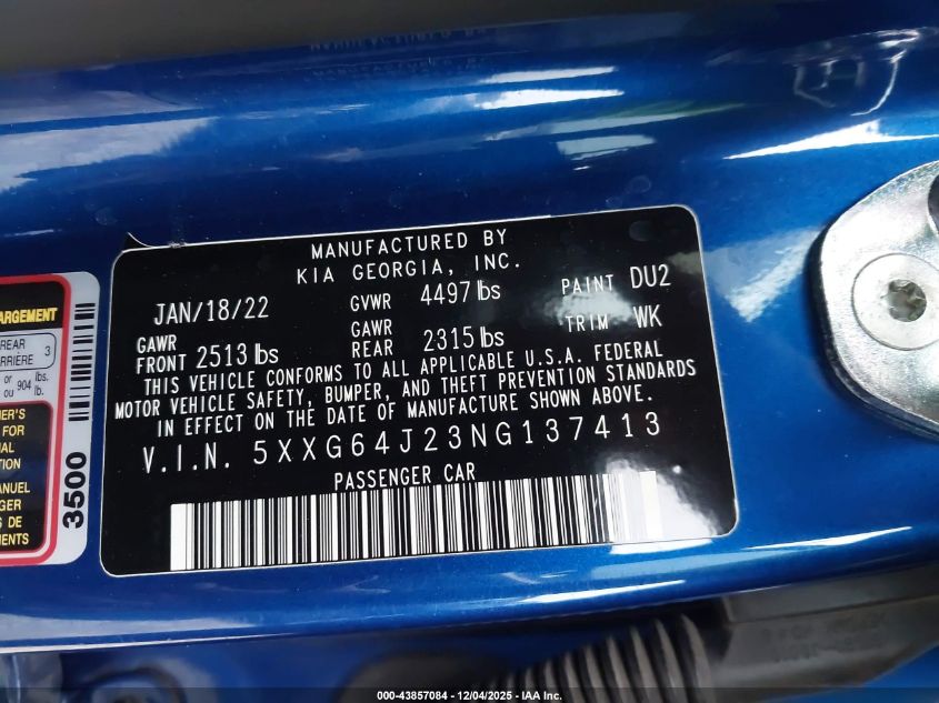 2022 KIA K5 2022 року Бензин, 1.6, Полный привод, vin - 5XXG64J23NG137413 из США