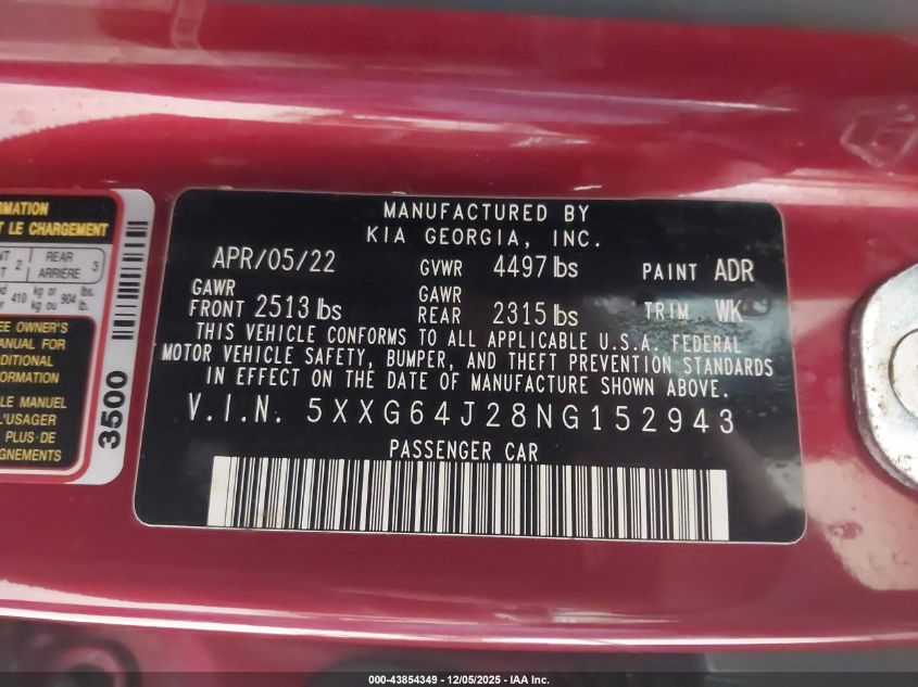 2022 KIA K5 2022 року Бензин, 1.6, Полный привод, vin - 5XXG64J28NG152943 из США
