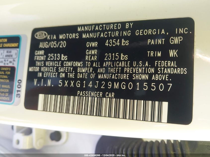 2021 KIA K5 2021 року Бензин, 1.6, Передний привод, vin - 5XXG14J29MG015507 из США