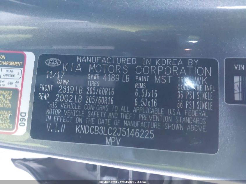 Цвет СерыйЦилиндры 4Привод Передний приводVIN KNDCB3LC2J5146225Состояние Заводится и едет (проверено)Повреждения Задняя AutoRIA