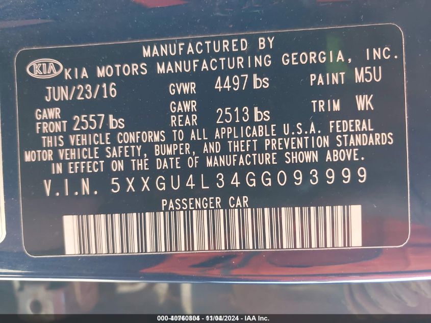 2016 KIA OPTIMA 2016 року Бензин, 2.4, Передний привод, vin - 5XXGU4L34GG093999 из США