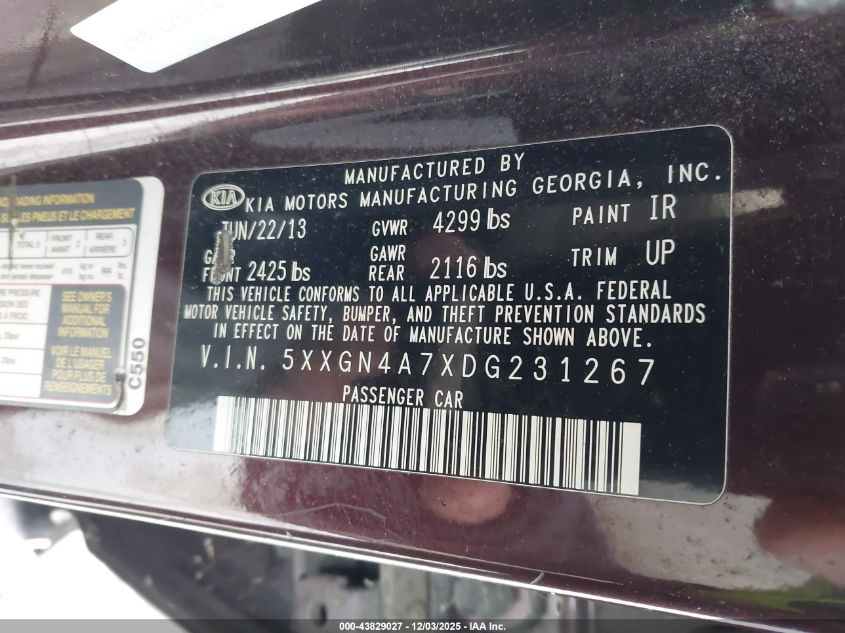 2013 KIA OPTIMA 2013 року Бензин, 2.4, Передний привод, vin - 5XXGN4A7XDG231267 из США
