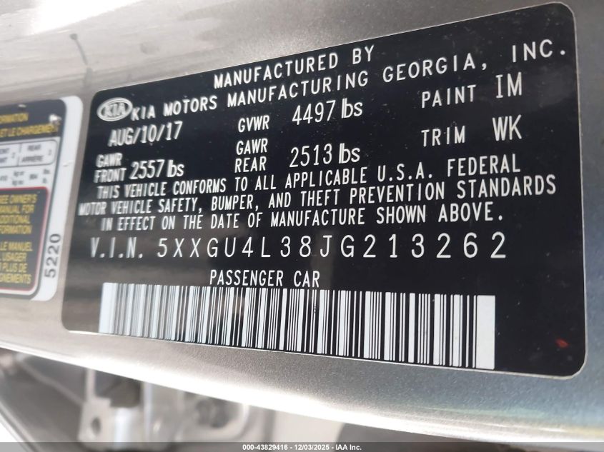2018 KIA OPTIMA 2018 року Бензин, 2.4, Передний привод, vin - 5XXGU4L38JG213262 из США