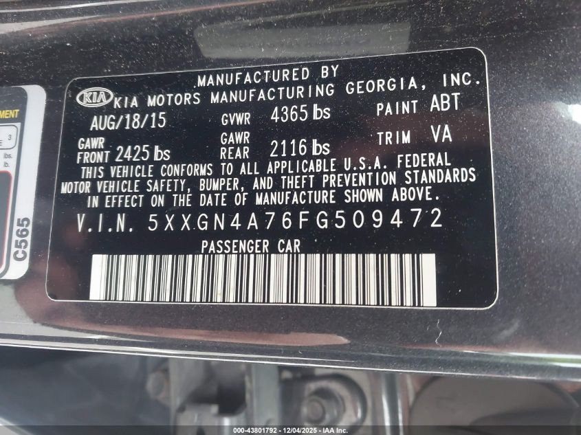 2015 KIA OPTIMA 2015 року Бензин, 2.4, Передний привод, vin - 5XXGN4A76FG509472 из США
