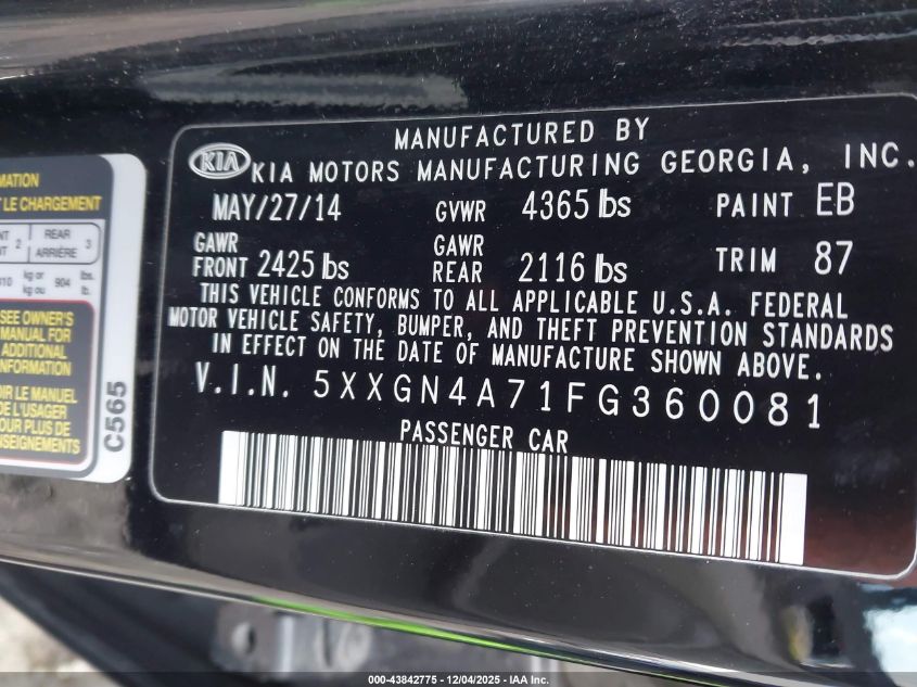 2015 KIA OPTIMA 2015 року Бензин, 2.4, Передний привод, vin - 5XXGN4A71FG360081 из США