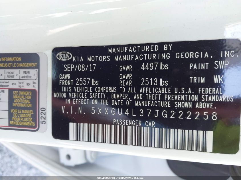 2018 KIA OPTIMA 2018 року Бензин, 2.4, Передний привод, vin - 5XXGU4L37JG222258 из США