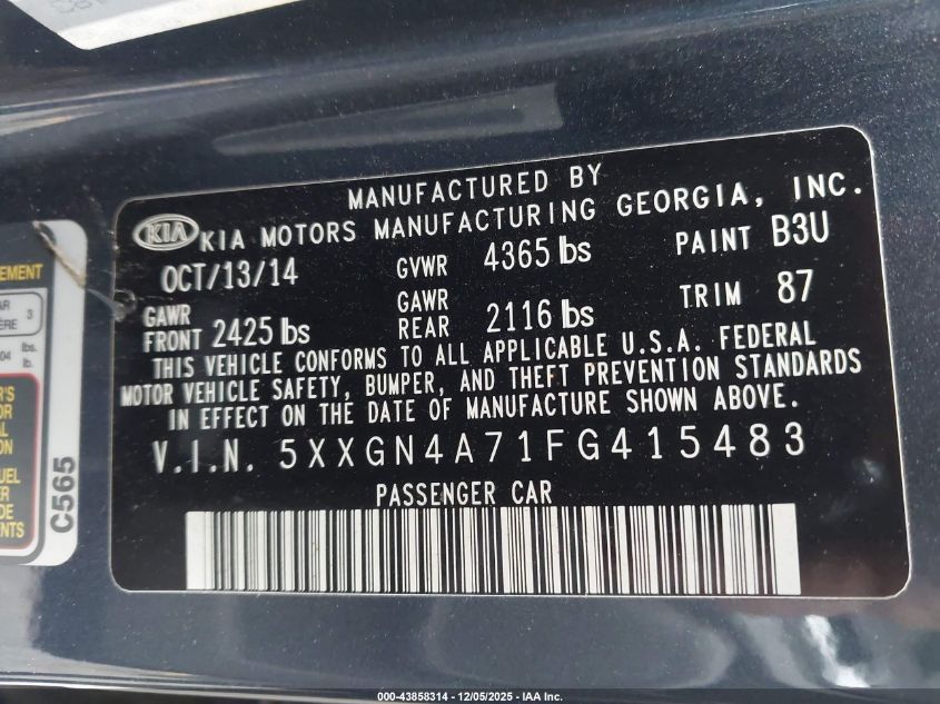 2015 KIA OPTIMA 2015 року Бензин, 2.4, Передний привод, vin - 5XXGN4A71FG415483 из США