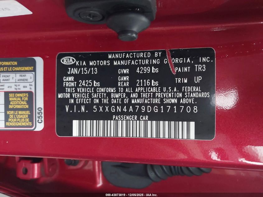 2013 KIA OPTIMA 2013 року Бензин, 2.4, Передний привод, vin - 5XXGN4A79DG171708 из США
