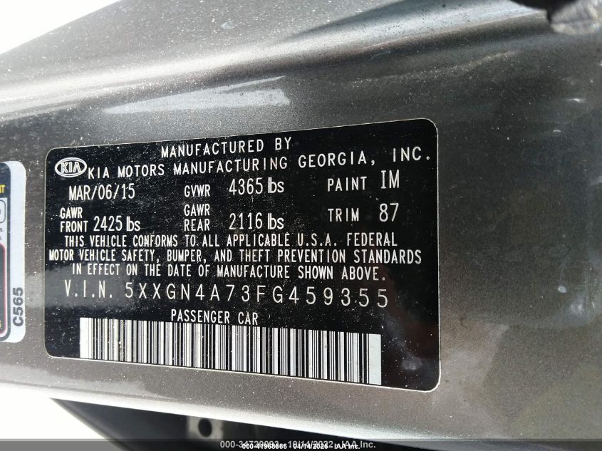2015 KIA OPTIMA 2015 року Бензин, 2.4, Передний привод, vin - 5XXGN4A73FG459355 из США