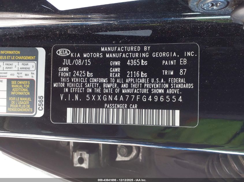 2015 KIA OPTIMA 2015 року Бензин, 2.4, Передний привод, vin - 5XXGN4A77FG496554 из США