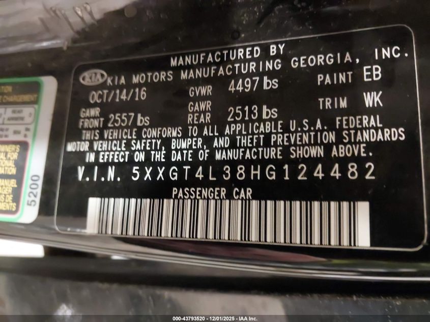 2017 KIA OPTIMA 2017 року Бензин, 2.4, Передний привод, vin - 5XXGT4L38HG124482 из США