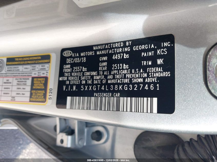 2019 KIA OPTIMA 2019 року Бензин, 2.4, Передний привод, vin - 5XXGT4L38KG327461 из США